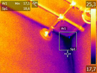 Поверхность внешнего угла внутри помещения обычно холоднее, чем других участков стены. Особенно сильно это заметно в углах, примыкающих к неотапливаемым чердаку или подполью: