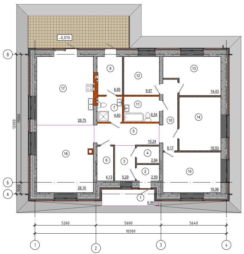 Учёт данных факторов позволяет понять, почему для распластанных одноэтажников, типа нашего проекта К-106 или проекта Z10 не очень рационально использовать плитные фундаменты: