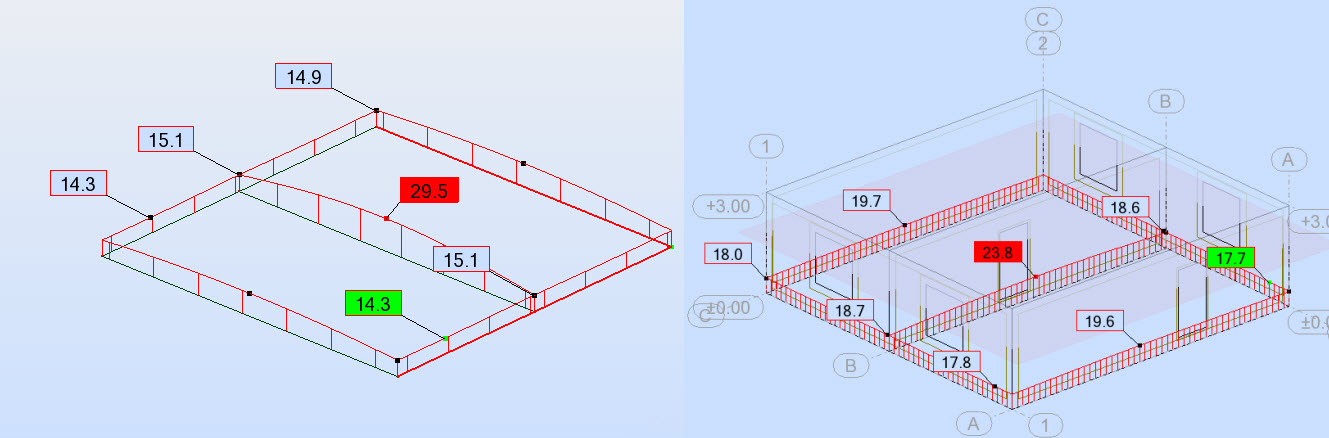 Что даёт совместный расчёт здания, основания и фундамента? Практика показывает, что он позволяет более точно учесть возникающие в конструкциях фундамента усилия и получить более выгодную для заказчика конструкцию за счёт: