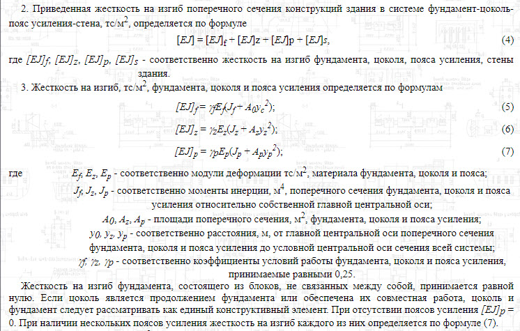 Отдельно остановимся на практике учёта жесткости надфундаментой части здания. В ряде нормативов такой подход активно применяется, например, в ВСН 29-85 его автор Сажин В.С. использует следующую методику для расчёта деформаций морозного пучения: