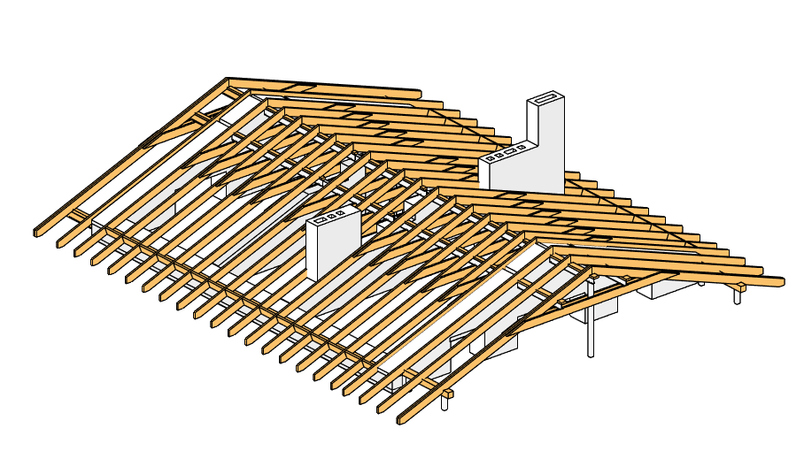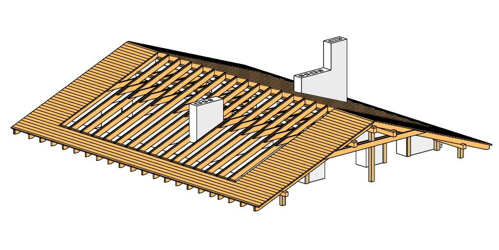 - Схема расположения стропильной системы, основные сечения, разрезы и спецификации /ведомости